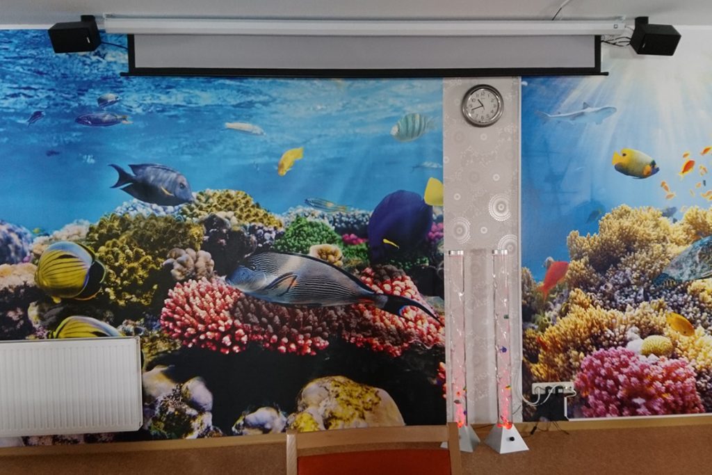 Umrahmt wird das Ganze durch diverse Umgestaltungen, wie Fototapeten mit viel Wasser, neuen beleuchteten Wassersäulen und einem exklusiven Brunnen im Eingangsbereich zum Aufenthaltsraum.